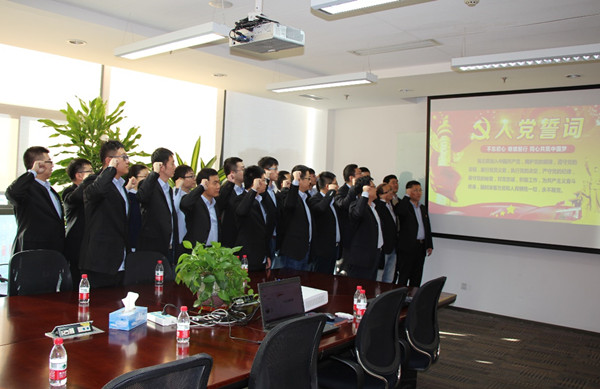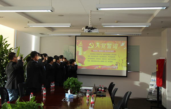 會前,與會的全體黨員,面向黨旗,重溫入黨誓詞。