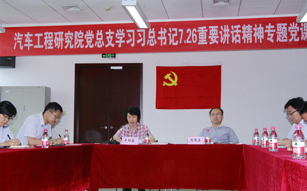在中國共產黨第十九次全國代表大會即將召開之際,2017年9月7日,中汽中心黨委副書記牛向春圍繞“貫徹傳達習近平總書記‘7·26’重要講話精神”和“解讀《關于新形勢下黨內政治生活的若干準則》”兩大主題為汽車工程研究院黨總支全體黨員講了一次精彩的黨課。黨課會議由工程院黨總支書記高繼東同志主持,工程院黨總支56名在津黨員參加了黨課學習。