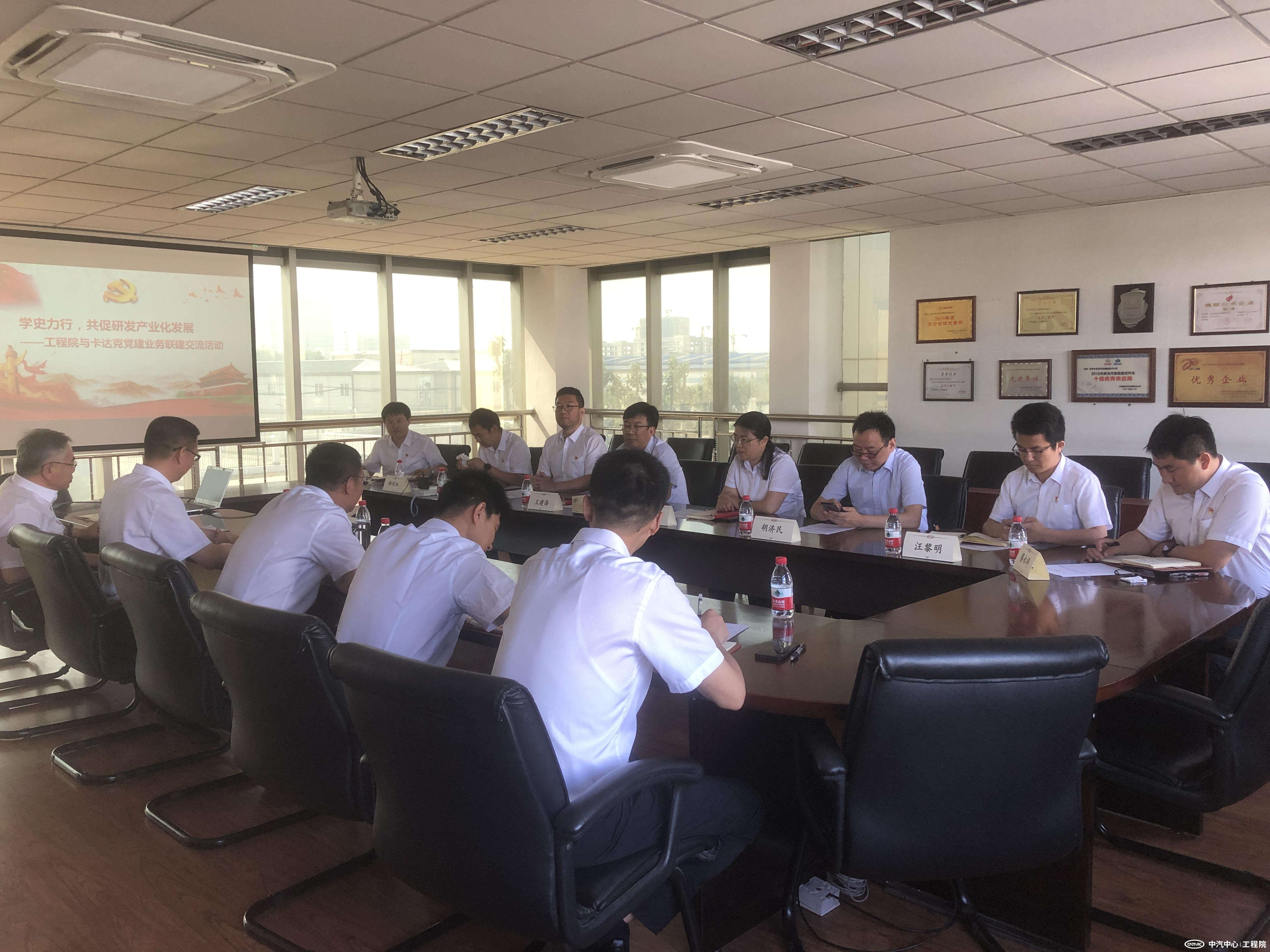 為加強中心內部院所間黨建與業務聯建交流,打通業務壁壘,搭建合作橋梁,切實做到以高質量黨建引領高質量發展,6月11日,中汽研(天津)汽車工程研究院有限公司(簡稱“工程院”)與天津卡達克汽車高新技術有限公司(簡稱“卡達克”)組織開展黨建與業務聯建交流活動。工程院黨委書記、總經理王建海,卡達克高新公司黨支部書記、總經理李陸山,及雙方黨組織班子成員、相關部門人員參加活動。