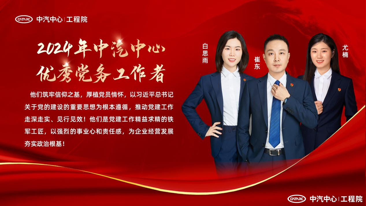 工程院黨委3人獲評中汽中心2024年“優(yōu)秀黨務(wù)工作者”榮譽稱號